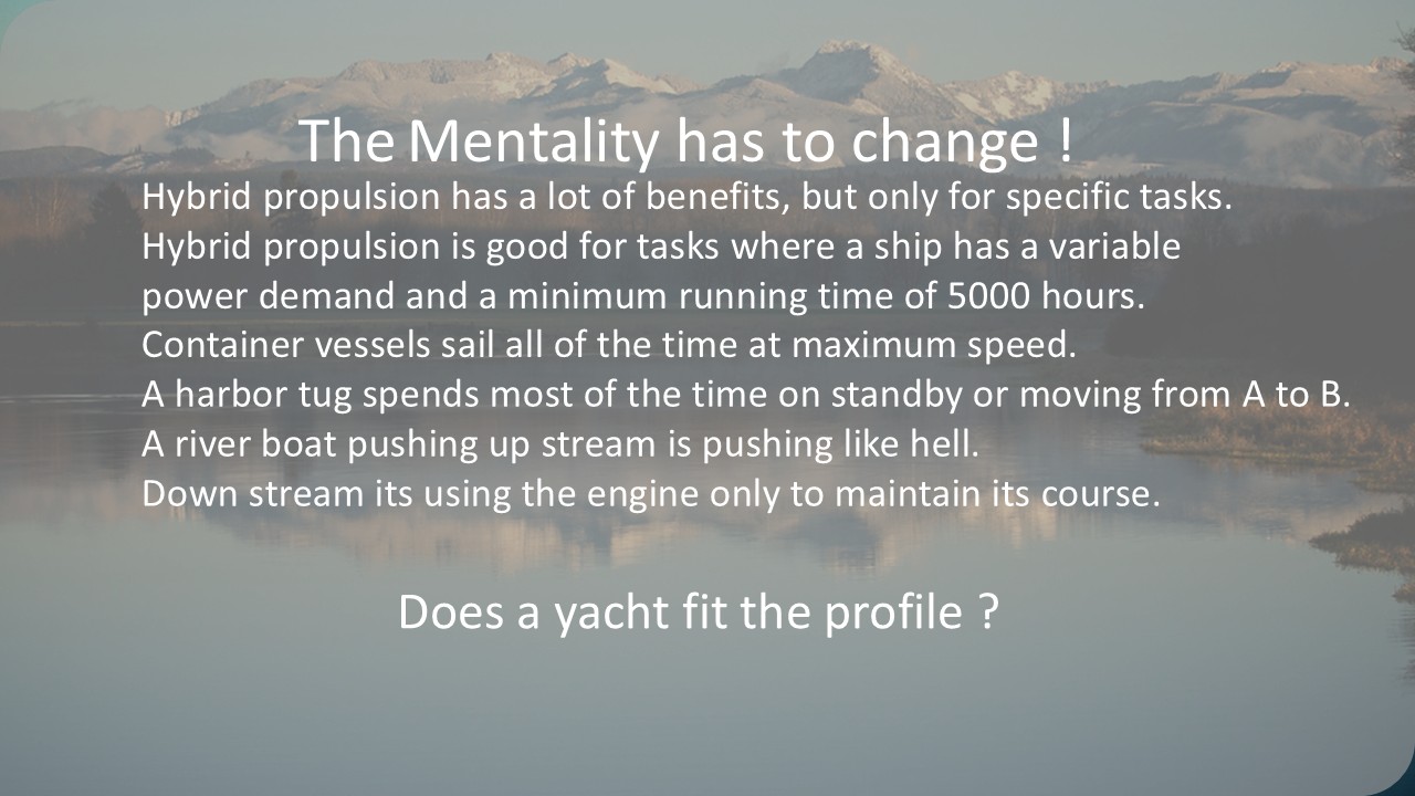 A team of hybrid experts will discuss the future of yacht energy, from the perspective of what makes sense and what works, based on market forces and the demand for next generation yachts?